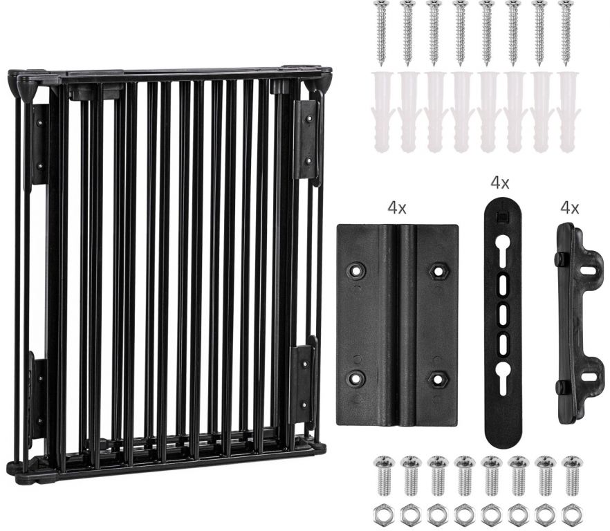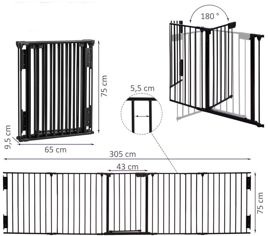Kratka ochronna dostarczana jest już zmontowana i można ją łatwo złożyć, dzięki czemu jej montaż jest szybki i zajmuje mało miejsca. Drzwi kraty bezpieczeństwa można otwierać jedną ręką i w obu kierunkach. Drzwi są również wyposażone w zamek bezpieczeństwa. Kratka może być używana na wiele sposobów, takich jak kratka zabezpieczająca kominek, kratka barierowa, kratka ochronna, kratka schodowa, kratka zabezpieczająca drzwi i wiele innych.