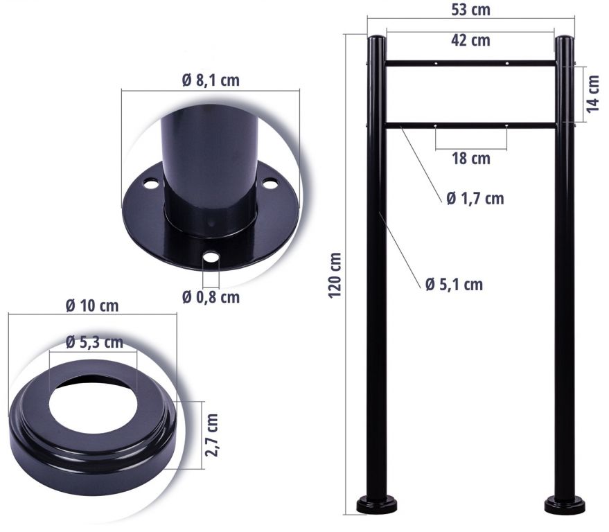STILISTA Skrzynka na listy ze stojakiem, stal, 33 x 17 cm