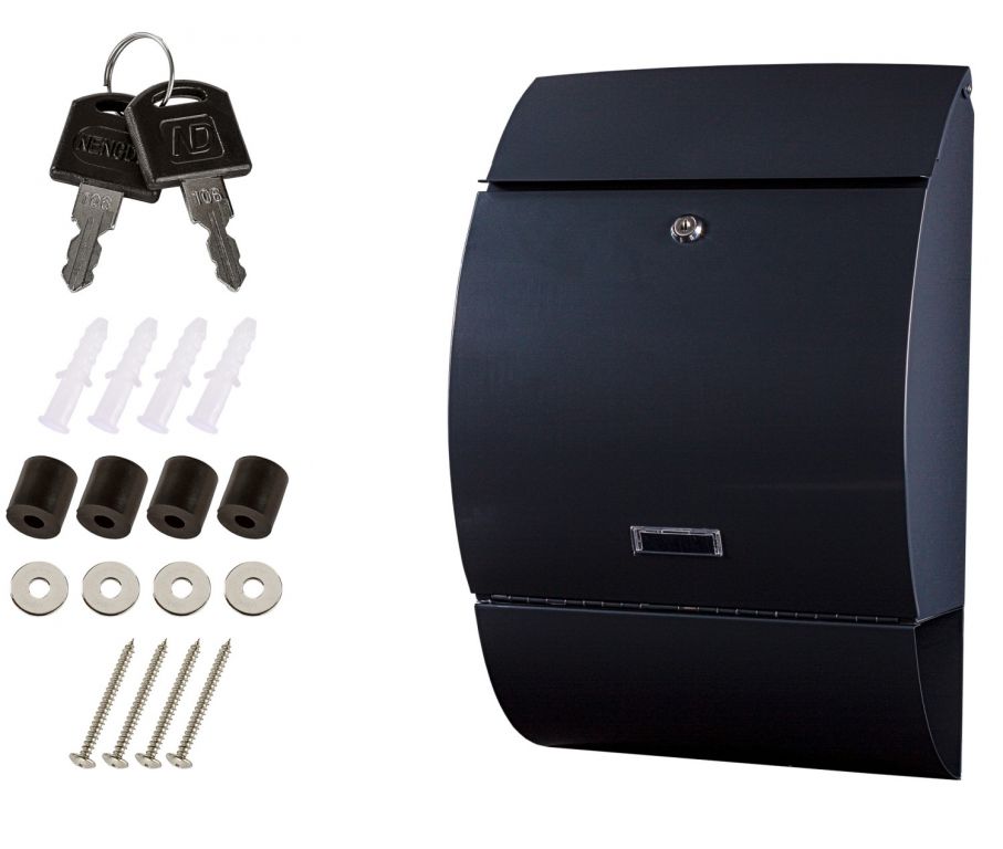 Naścienna skrzynka pocztowa o nowoczesnym wyglądzie oferuje dużo miejsca na listy i pocztówki.