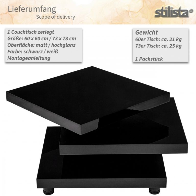 Stilista Stolik kawowy, 73 x 73 cm, czarny połysk