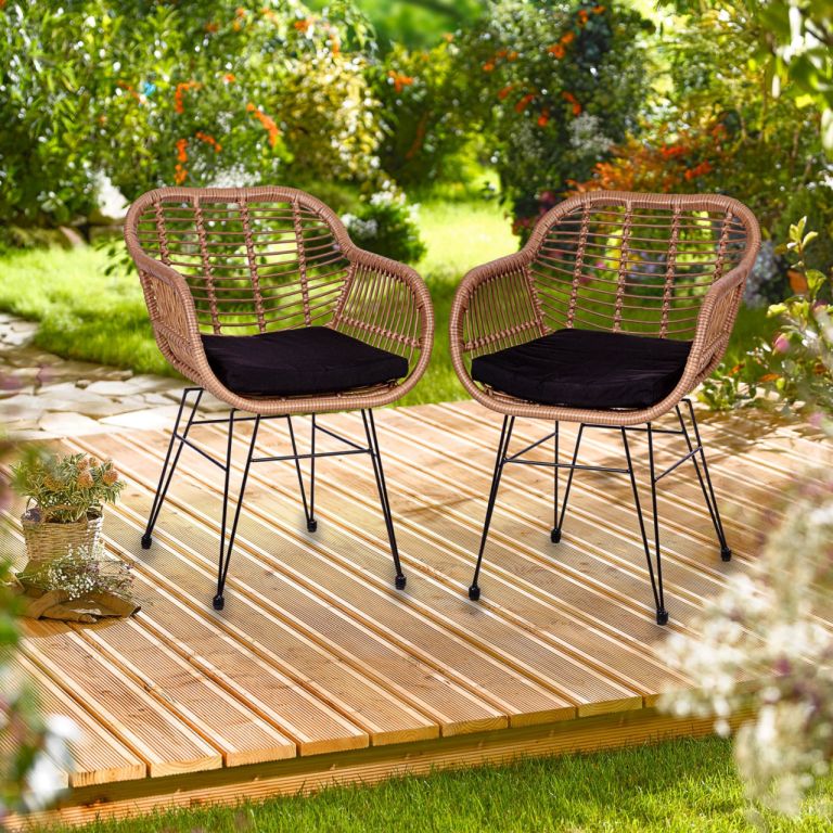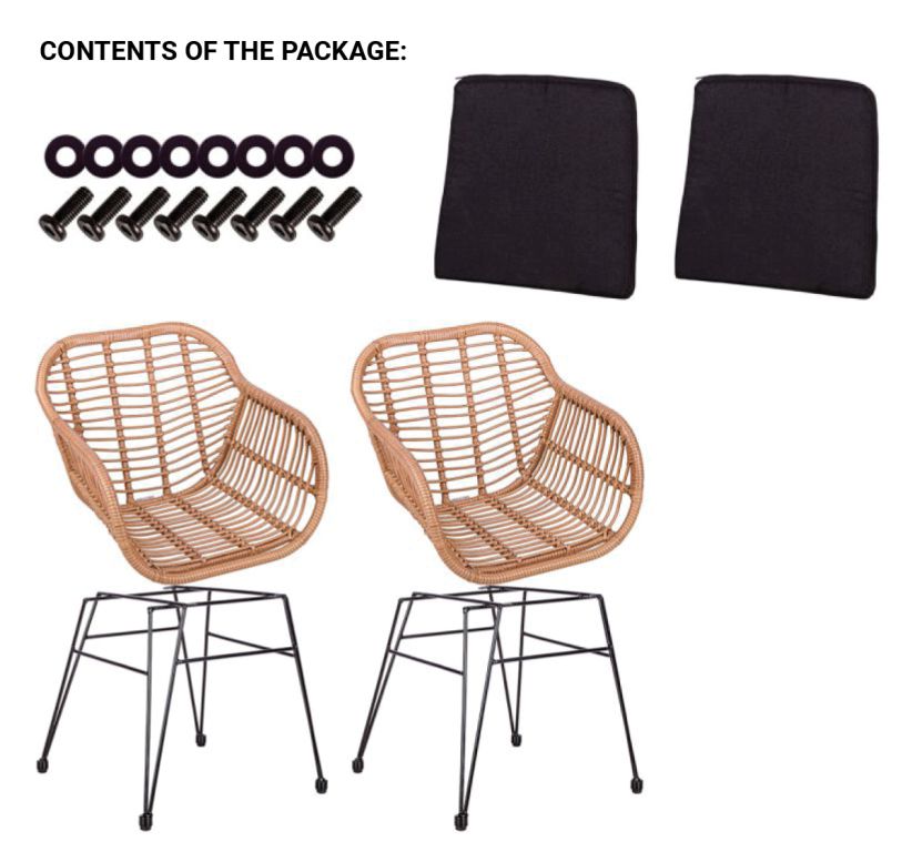 Zestaw składa się z 2 krzeseł o udźwigu do 120 kg, które zapewnią prawdziwy spokój i relaks w ogrodzie, na balkonie lub tarasie.