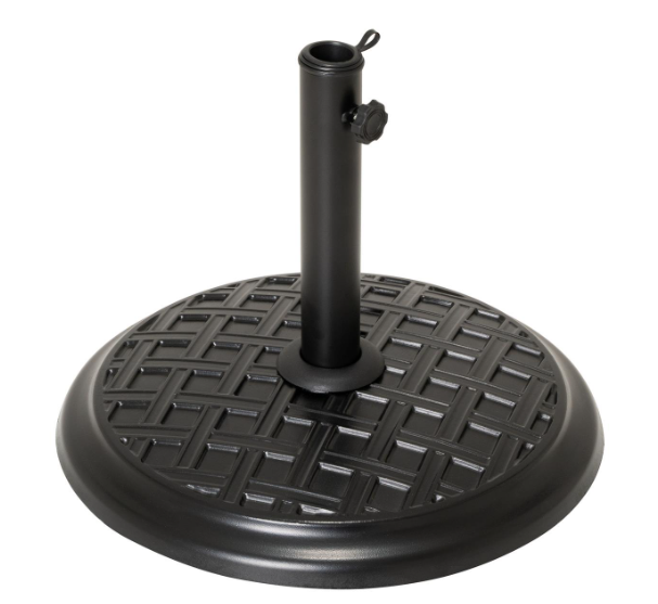 Ten solidny okrągły stojak na parasole wykonany z betonu nie tylko spełnia swoją funkcję jako bezpieczny uchwyt na parasol, ale także dobrze wygląda, jest lekki i praktyczny. Stojak jest pokryty czarną powłoką i ma dekoracyjny wzór. Wyposażony w śrubę blokującą, która mocuje parasol. Idealny na taras lub balkon. Okrągły talerz ma średnicę ok. 45 cm. Dzięki wadze 15 kg stojak nadaje się do parasoli do 2 m - nie do parasoli wspornikowych. Zwróć również uwagę na inne nasze artykuły ogrodowe, takie jak parasole, stoły, krzesła składane, krzesła piętrowe, leżaki, ławki wykonane z metalu, plastiku lub drewna.