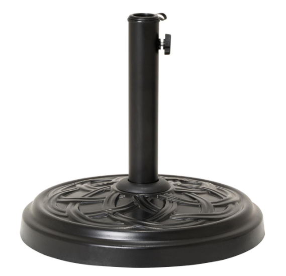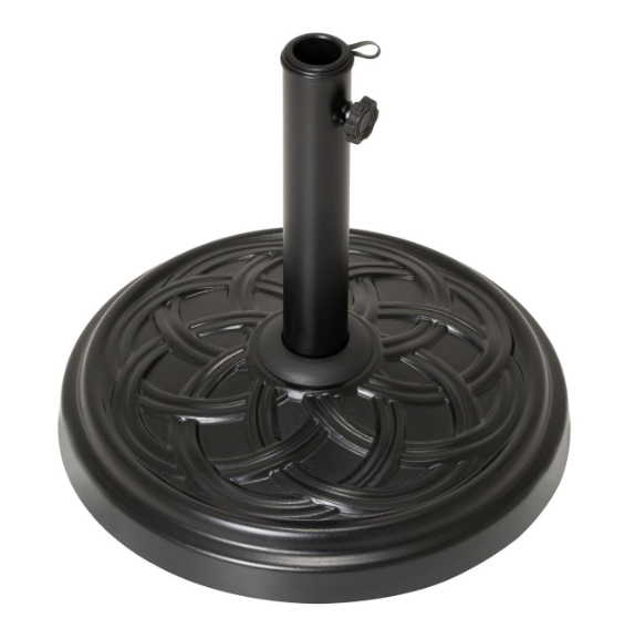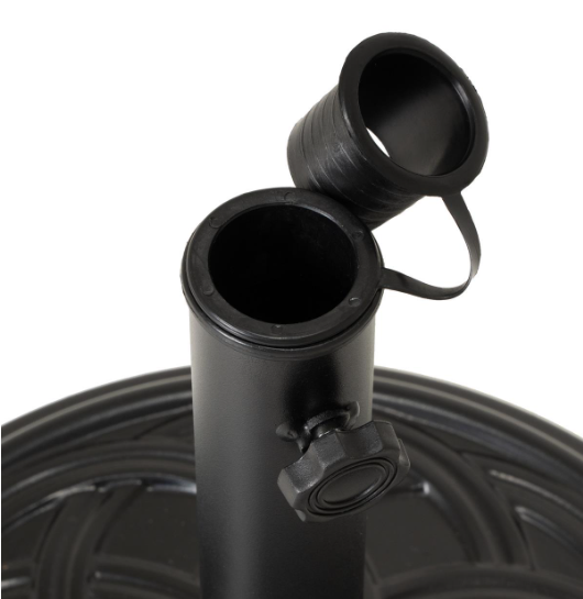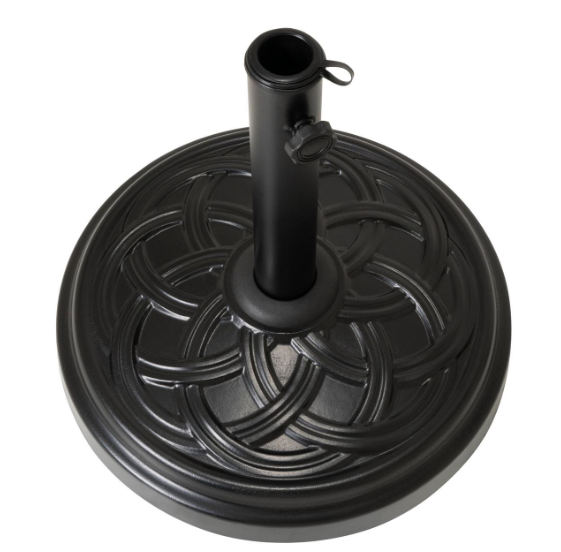 Ten solidny, 15-kilogramowy, okrągły stojak na parasol wykonany z betonu nie tylko spełnia swoją funkcję jako bezpieczna podpora dla parasola, ale tak