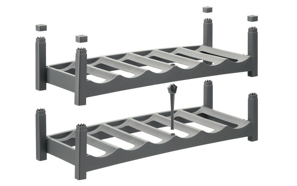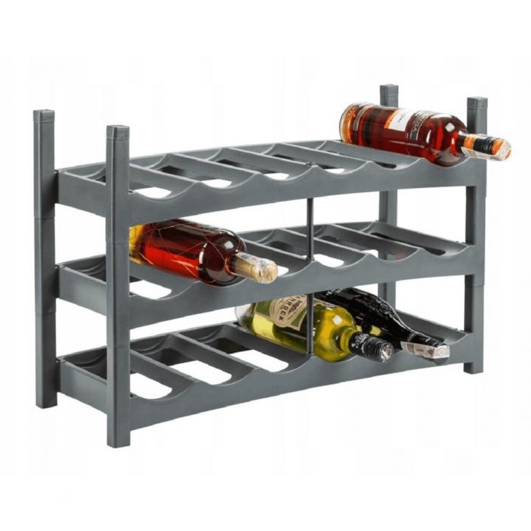 Plastikowy stojak na butelki. Każdy moduł oferuje miejsce na 6 butelek.