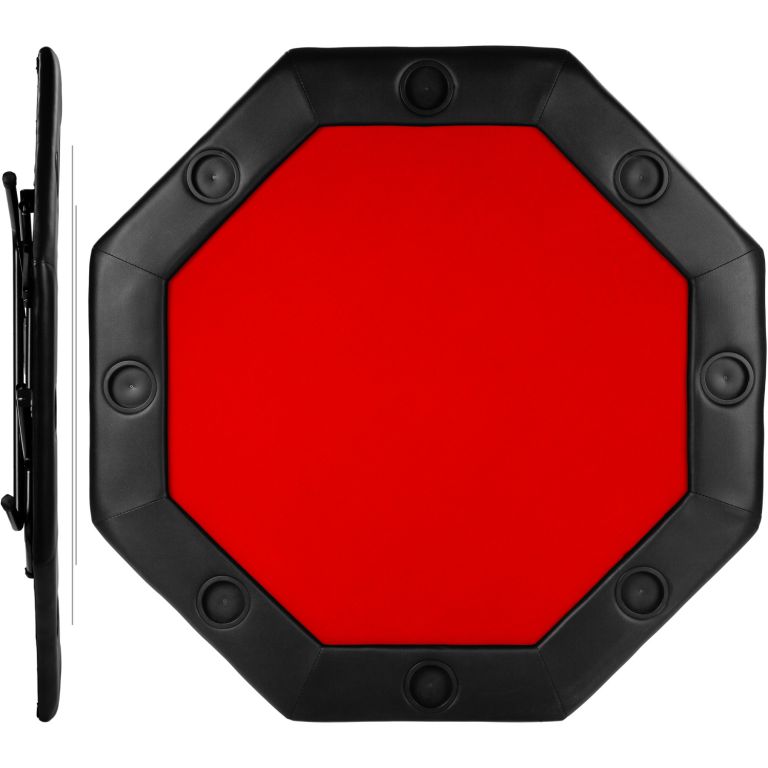 Wysokiej jakości filcowy blat stołu, skórzane bandy zapewniają wyrafinowany wygląd stołu pokerowego. Stół do gry w pokera można złożyć, do wysokości 12 cm szybko i łatwo. Stół jest odpowiedni dla maksymalnie 8 graczy, z 8 uchwytami na napoje.