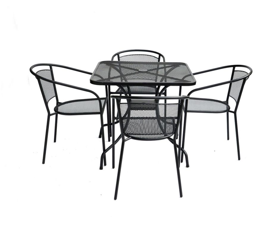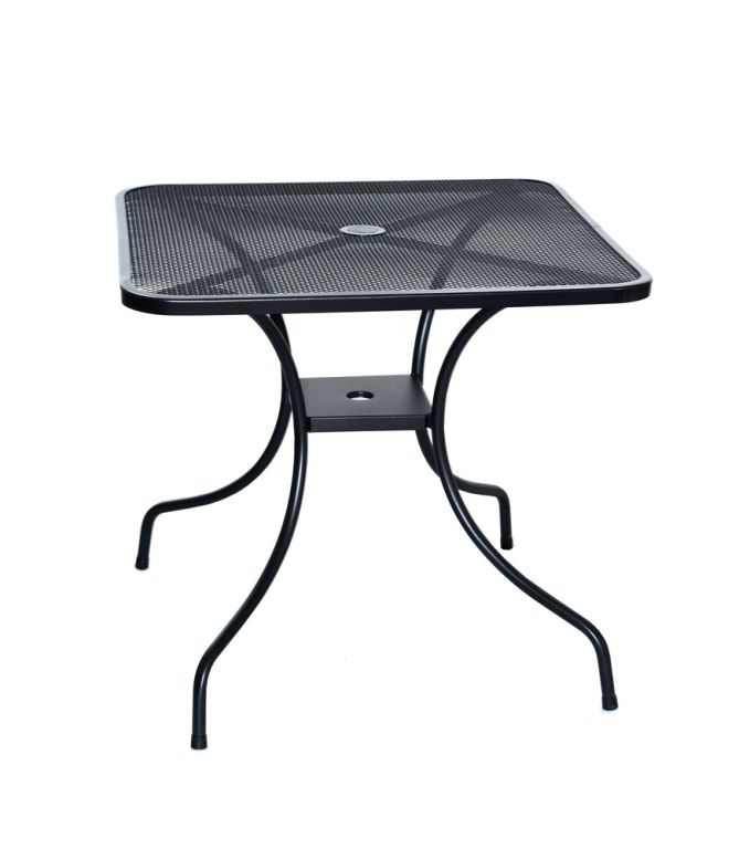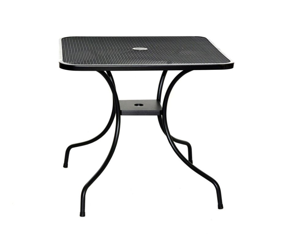 Metalowy stół ogrodowy z górnym blatem o kwadratowym kształcie. Doskonale łączy się ze wszystkimi rodzajami metalowych mebli ogrodowych. Jest łatwy w utrzymaniu.