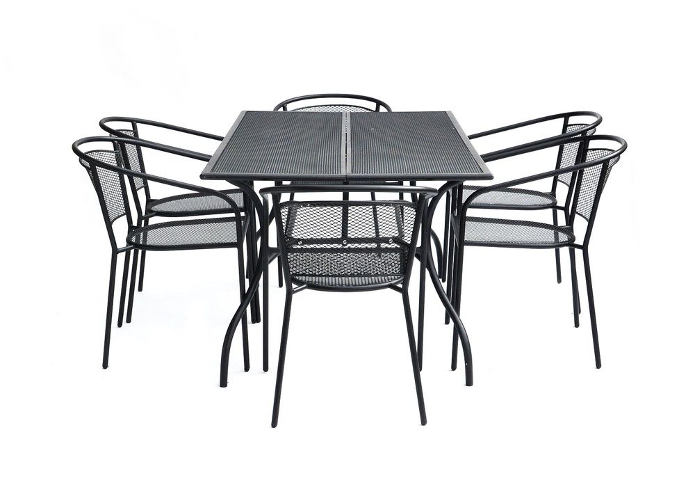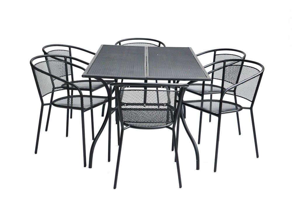 Metalowy stół ogrodowy z prostokątną płytą górną z drutu. Dobrze komponuje się ze wszystkimi rodzajami metalowych mebli ogrodowych. Jest łatwy w utrzymaniu i myciu.