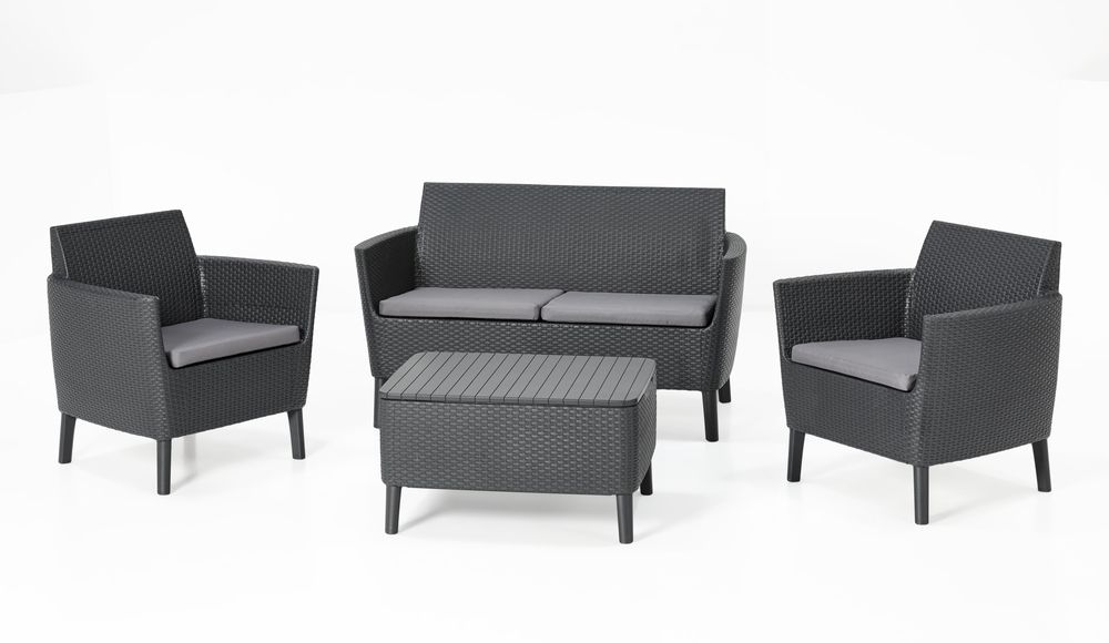 Jest to elegancki stół z imitacji rattanu, który służy również jako schowek. Nadaje się do uzupełnienia każdego tego rodzaju zestawu.