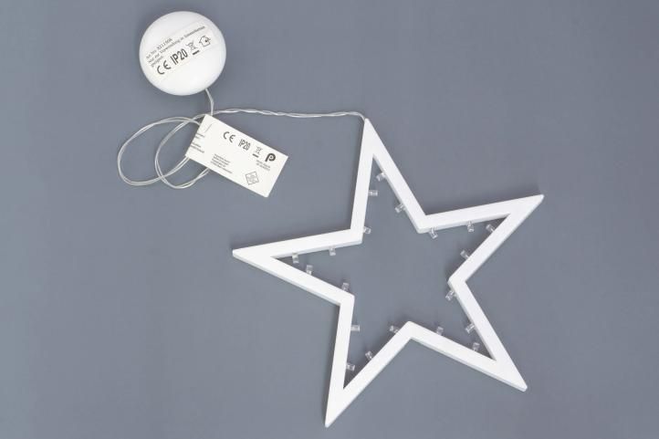 Dekoracyjne oświetlenie w kształcie gwiazdy z 20 diodami LED emitującymi ciepłe, białe światło wspaniale podkreśla świąteczną i romantyczną atmosferę Bożego Narodzenia. Nadaje się tylko do użytku w pomieszczeniach.