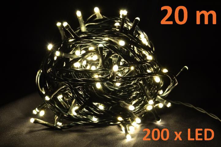 Świąteczne oświetlenie LED 20 m – ciepły biały, 200 diod
