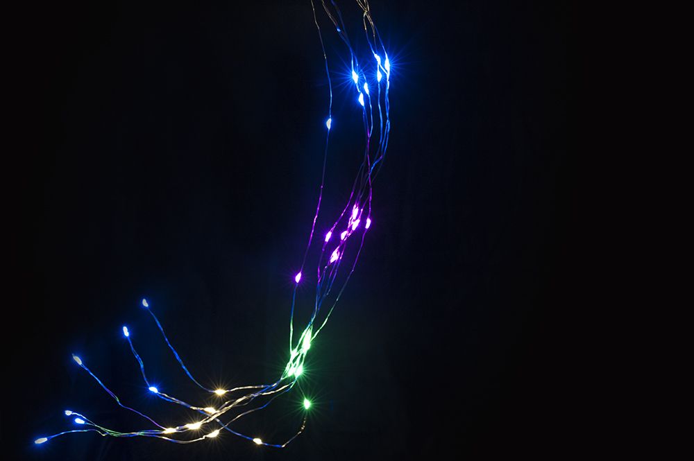 Świąteczne dekoracyjne oświetlenie w postaci cienkich drutów, które można umieścić zgodnie z wyobraźnią w dowolnym miejscu w domu.