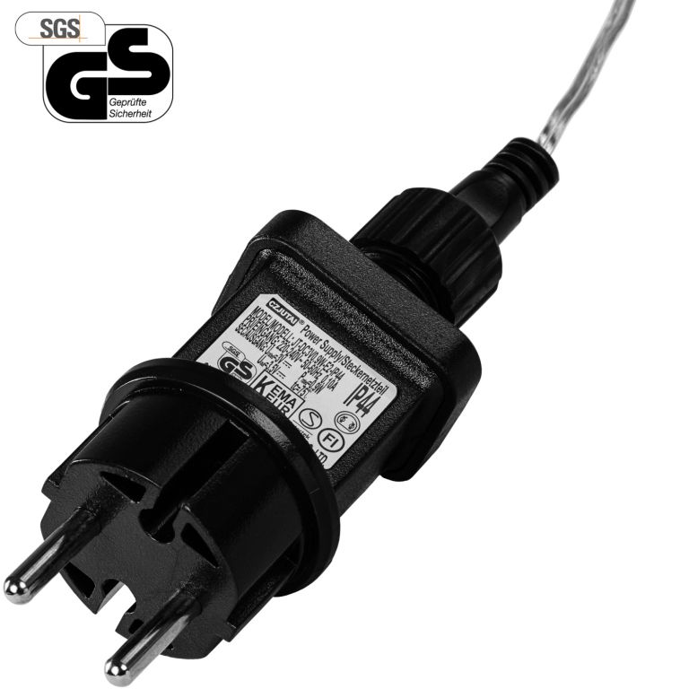 Łańcuch LED jest zgodny z niemieckimi standardami i posiada certyfikat bezpieczeństwa GS. Zgodny z IP 44 (na zewnątrz). Brak funkcji migania.