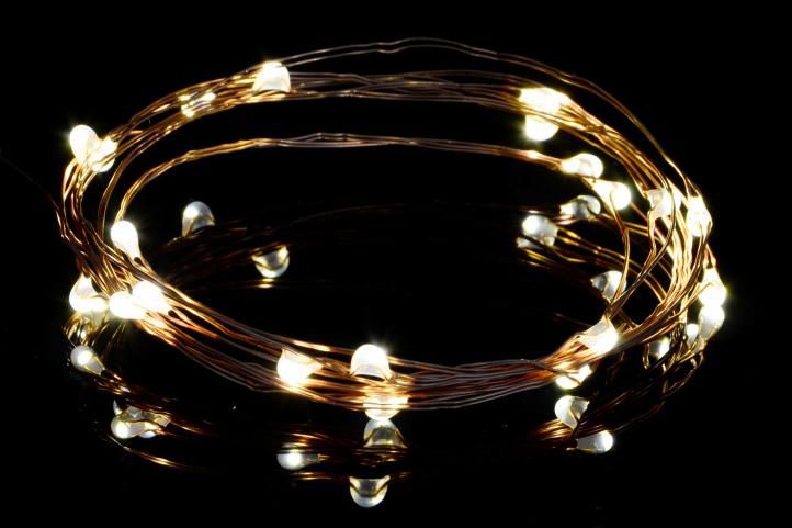 Jeżeli nie są Państwo zwolennikami dużej i uderzającej dekoracji świątecznej? Poszukują Państwo delikatnego i umiarkowanego oświetlenia domu lub mieszkania? Tak ten łańcuch z diodami MINI wydaje się odpowiedni. Mini LED umieszczone są na błyszczącym żółtym drucie a oświetlenie jest zasilane z baterii, co nie ogranicza zastosowania tylko w pobliżu gniazdka elektrycznego.