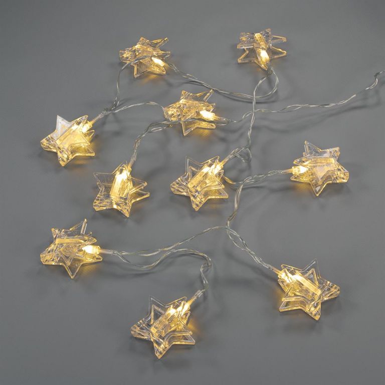 Ukazać szczegółowy opisŚwietlny łańcuch - gwiazdki, ciepła biel, 10 diod, timer