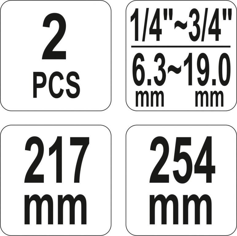 Długość szczypiec 217 i 254 mm, szczęki 1/4"- 3/4" (6,3 - 19 mm).