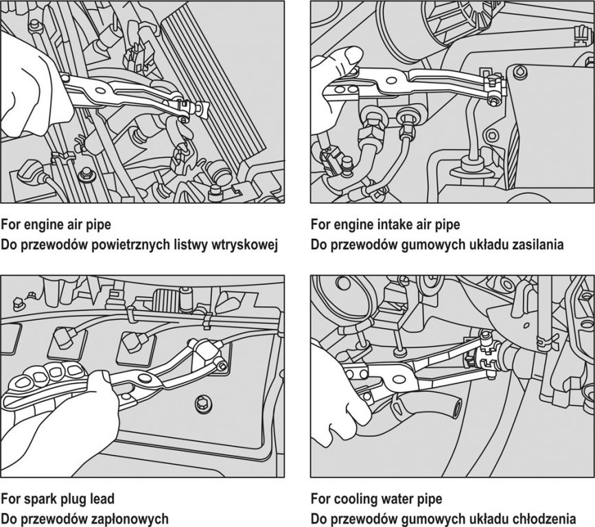Zestaw szczypiec do zacisków i węży.