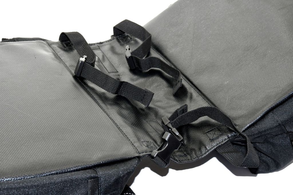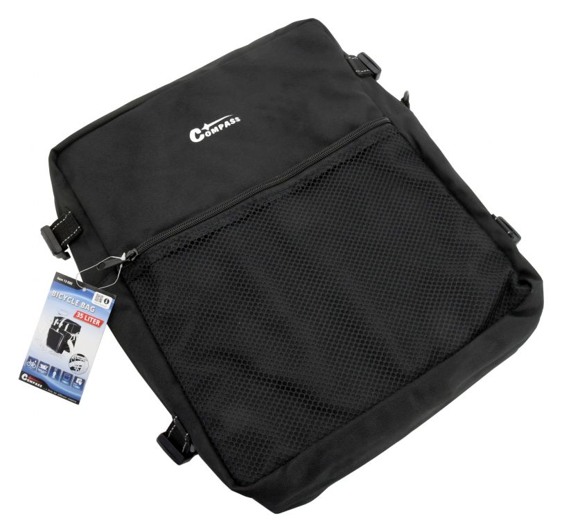 Przednią część torby oraz górną część torby dodatkowo uzupełniają dodatkowe kieszenie z siatki. Kieszenie oprócz siateczkowych zapinane są na zamek błyskawiczny. Dzięki tej torbie rowerowej można przewozić duże ładunki, takie jak zakupy, których w innym przypadku nie można bezpiecznie przejechać na rowerze. Dolna część wyposażona jest w regulowane klamry, ułatwiające zapięcie do różnych wymiarów nosideł. Dzięki zastosowanemu materiałowi, szczególnie od środka, torba jest wytrzymała i łatwa do prania.