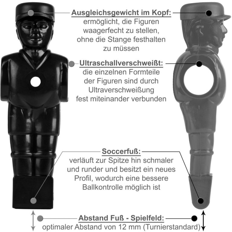 Piłkarzyki są dostarczone z wstępnie zmontowanym korpusem - wystarczy zamontować nogi i słupki.