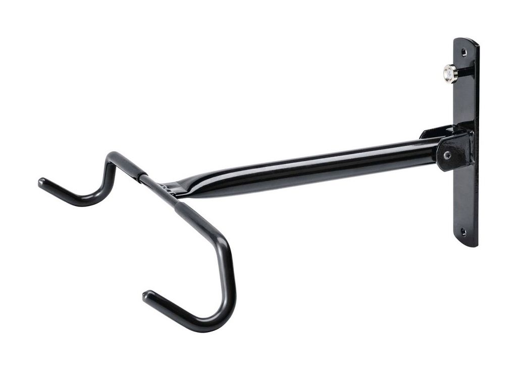 Uchylny metalowy uchwyt rowerowy przeznaczony do montażu na ścianie. Uchwyt przystosowany jest do zawieszenia za ramą roweru, oszczędzając w ten sposób miejsce i ułatwiając przechowywanie rowerów. Dodatkowo jest wyposażony w magnes, dzięki któremu można go bezpiecznie złożyć, gdy nie jest używany, aby zaoszczędzić jeszcze więcej miejsca. Konstrukcja uchwytu jest w całości metalowa z gumowanym końcem. Uchwyt montowany jest w ścianie za pomocą wkrętów z kołkami.