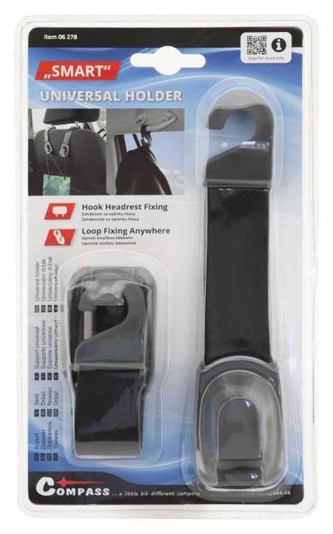 System zaciskowy składa się z pary uchwytów wykonanych z wytrzymałego tworzywa sztucznego i gumy. Uchwyt nadaje się do wieszania toreb na zakupy, plecaków, ubrań itp. o maksymalnej wadze nieprzekraczającej 3 kg. Dzięki prostej konstrukcji uchwyty są maksymalnie kompaktowe, a ich przechowywanie jest możliwe praktycznie w każdym miejscu.