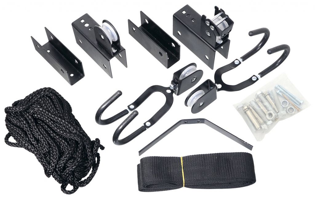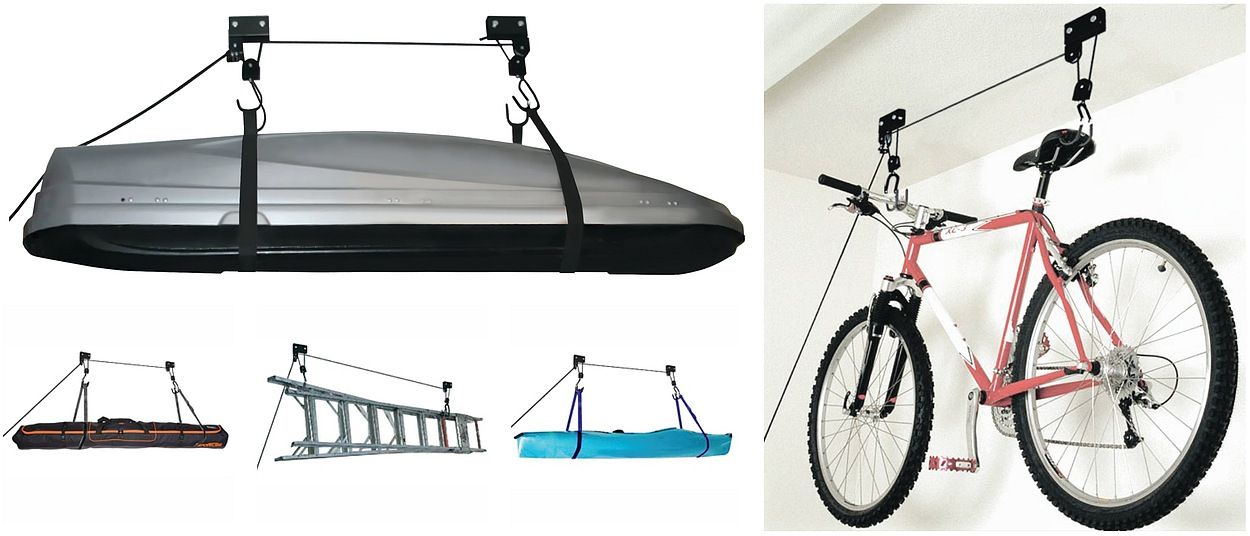 Wspornik działa na zasadzie podnośnika i może z łatwością podnosić boxy dachowe, drabiny, narty, rowery, kajaki i inne podobne duże przedmioty o wadze do 52 kg i umieszczać je pod sufitem pomieszczenia o maksymalnej wysokości 4 m. śruby i kołki. Za pomocą liny można łatwo manipulować zawieszonym przedmiotem. Urządzenie wyposażone jest w hamulec, który zapobiega zsuwaniu się liny i przed upadkiem zawieszonego przedmiotu. W opakowaniu znajduje się również pasek do bezpiecznego mocowania przedmiotów o różnych typach i kształtach.