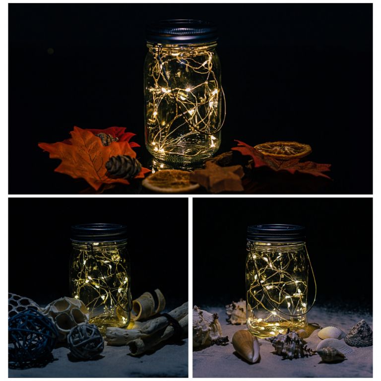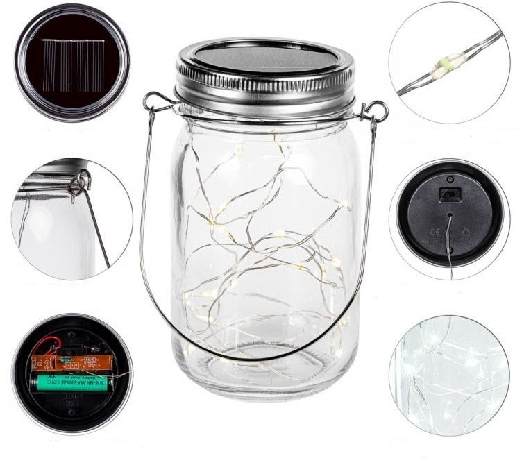 Dzięki czujnikowi światła latarni ogrodowej światło włącza się automatycznie, gdy jest ciemno i wyłącza się, gdy jest jasno. Szklana lampa solarna jest wodoodporna zgodnie ze standardem IP44 i dlatego nadaje się do użytku wewnątrz i na zewnątrz. Możesz dowolnie ozdobić wnętrze szkła np. piaskiem, muszelkami, kamieniami, kwiatami i tym podobnymi. Szklane lampy solarne nadają się na prezent na każdą okazję, niezależnie od tego, czy są to urodziny czy dekoracja domu i ogrodu.