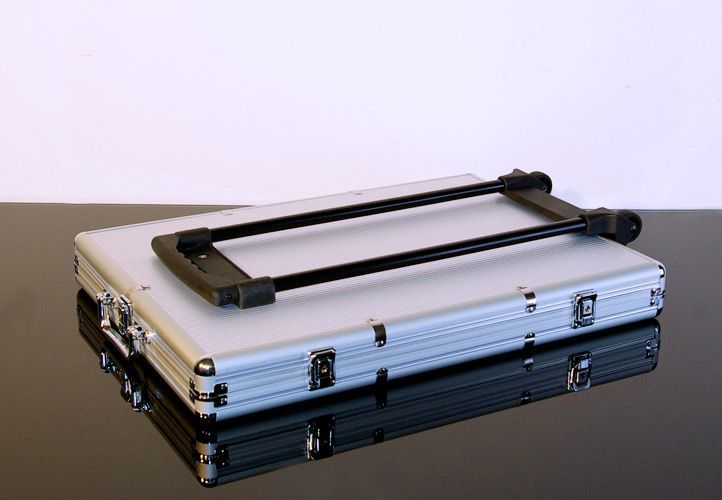 Mocna aluminiowa walizka na kółkach z trzema zamkami i wciąganym uchwytem jest idealna aż do 1000 żetonów do pokera. Trzeba dokupić żetony, które można sobie wybrać indywidualnie , reszta vybavení jest w komplecie.