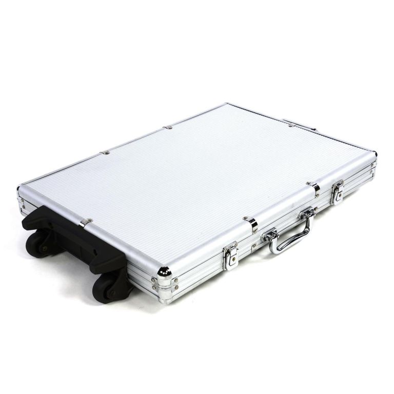 Elegancka aluminiowa walizka na kółeczkach na 1000 żetonów