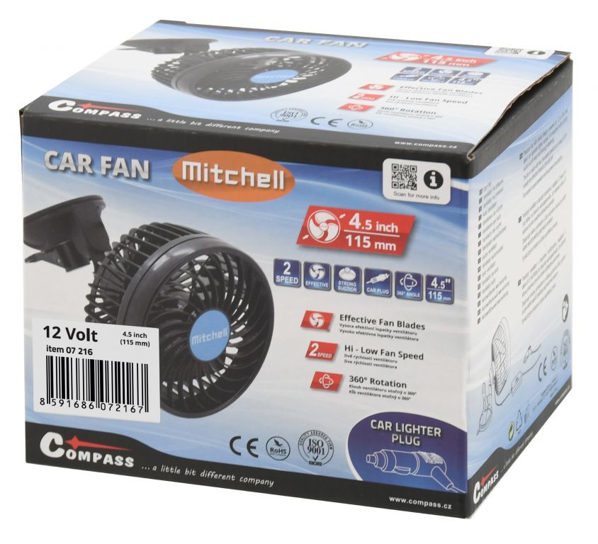 Praktyczny wentylator o solidnej konstrukcji. Wentylator ma dwie prędkości, a przegub kulowy ułatwia obracanie go w praktycznie dowolnym kierunku. Zasilanie 12 V jest dostępne z gniazda zapalniczki samochodowej.