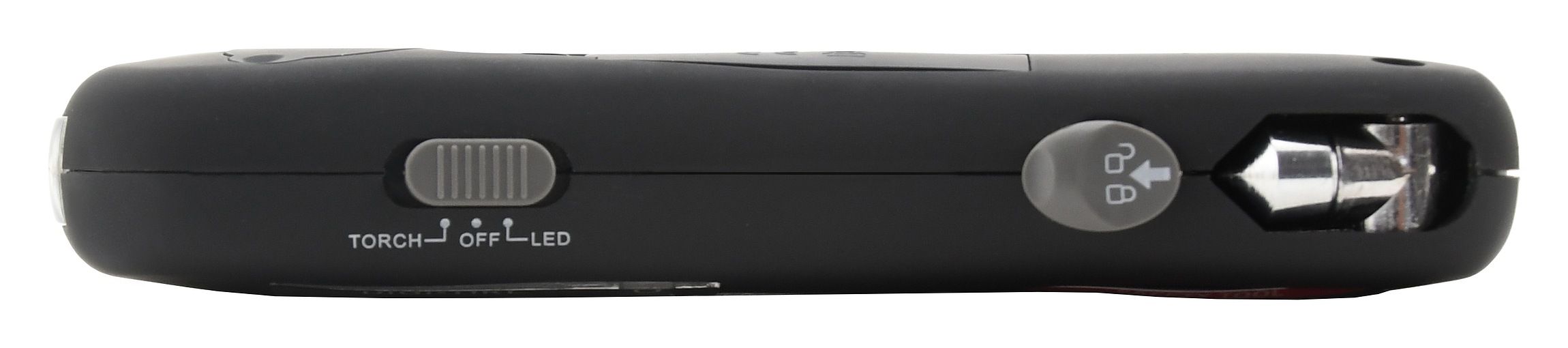 Miernik nadaje się na każdą podróż samochodem, zalecamy jazdę cały czas w aucie np. w kieszeni drzwi kierowcy. Dzięki temu zawsze będziesz mieć pod ręką wszystkie niezbędne narzędzia. Zawiera młotek do awaryjnego rozbicia szyby.