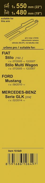 Długości wycieraczek oraz system mocowania wieszaków są dostosowane do wybranych samochodów (patrz tabela zastosowań). Wysokiej jakości elastyczny, płaski element zgarniający zapewnia równomierny docisk grafitowego ostrza na całej jego długości, co zapobiega rozmazywaniu się brudu i smugom.