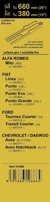 Długości wycieraczek oraz system mocowania są dostosowane do wybranych samochodów (patrz tabela zastosowań). Wysokiej jakości elastyczny, płaski element zgarniający zapewnia równomierny docisk grafitowego ostrza na całej jego długości, co zapobiega rozmazywaniu się brudu i smugom.