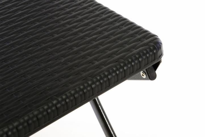 Eleganckie plastikowe krzesło, elegancki czarny rattan. Łatwo rozłożony, gotowy do użycia na balkonie, tarasie lub w ogrodzie. Przyjemnie spędzone godziny na świeżym powietrzu to nic więcej. Oczywiście możesz również korzystać z krzesła we własnym domu, nogi krzesła są wykończone gumową zatyczką. Fotel jest solidny, stabilny i nie wymaga konserwacji. Po prostu usuń brud wilgotną szmatką. Jeśli krzesło nie jest używane, można je łatwo złożyć i schować.