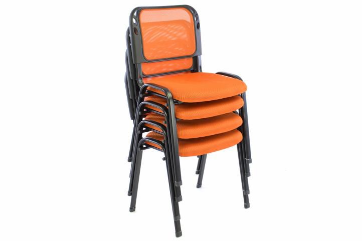 Krzesło biurowe do ustawiania w stos z tapicerowanym siedziskiem w kolorze pomarańczowym