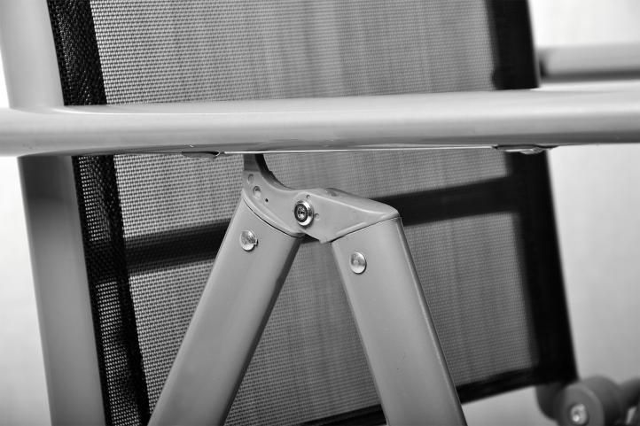 Krzesła są lekkie i bardzo wygodne. Wysokiej jakości tkanina (poliester powlekany PVC) jest odporna na warunki atmosferyczne, a szwy są zgrzewane. Gwarantuje optymalną wentylację siedziska i powierzchni podparcia. Materiał dopasowuje się indywidualnie do konturu pleców.