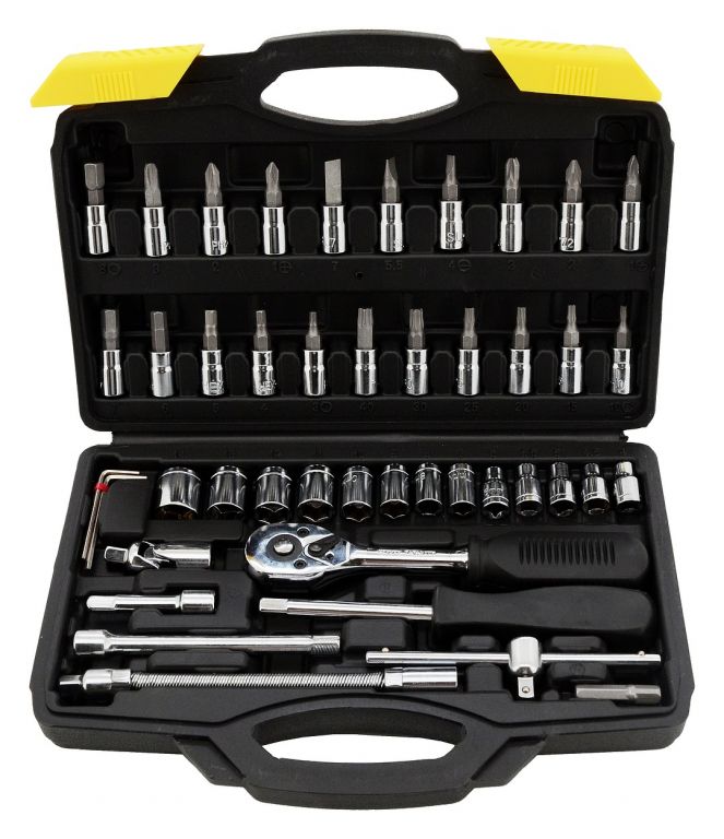 Zestaw Gola 1/4" wykonany ze stali CrV, grzechotka wyposażona w mechanizm 45-zębowy. Zestaw zawiera również szereg bitów, adapterów i przedłużek 1/4", rozmieszczonych w przejrzystych pozycjach w małej przenośnej walizce o wymiarach 24 x 16,5 x 5,5 cm. Zestaw nadaje się do użytku w domu, w garażu oraz w podróży.