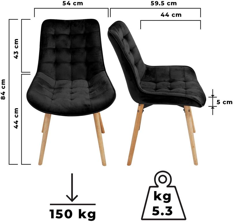 Krzesła do jadalni wykonane są z aksamitu. Tapicerka zapewnia wygodę, a przeszycia nadają krzesłom odpowiedni design. Nogi z drewna bukowego zapewniają doskonałą stabilność. Dzięki konstrukcji krzesło nadaje się nie tylko do kuchni, tylko od Ciebie zależy, gdzie je ustawisz.
