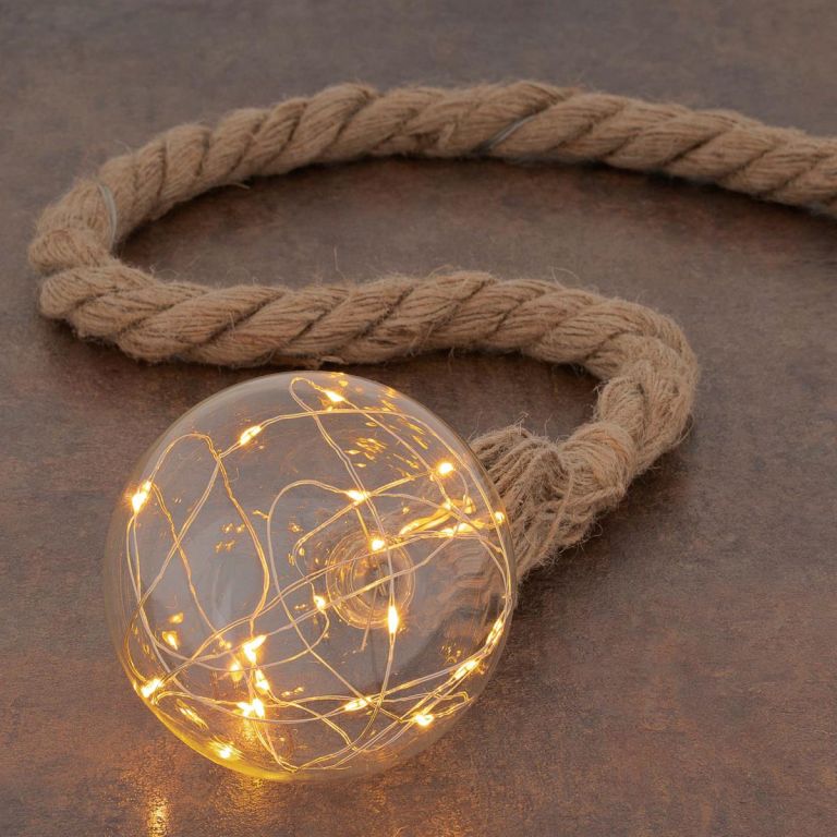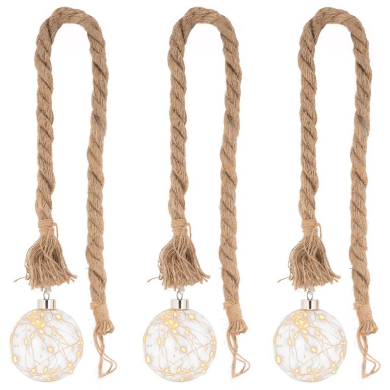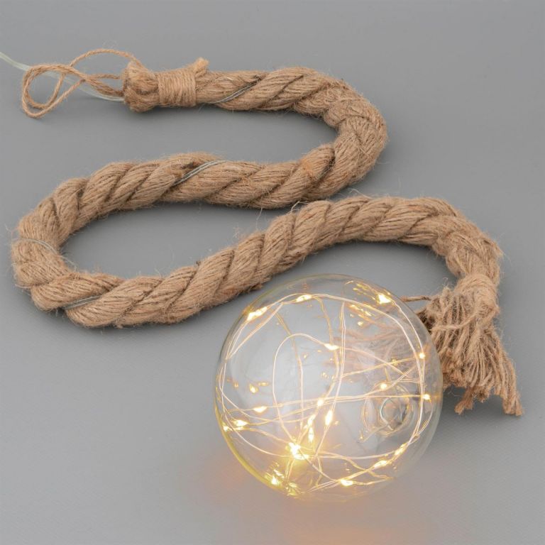 Dzięki takiemu zasilaniu bateryjnemu jesteś niezależny od zewnętrznych źródeł energii dzięki temu elementowi dekoracyjnemu i możesz umieścić kulę świetlną w dowolnym miejscu w pomieszczeniu. Diody LED zapewniają wyjątkowo niskie zużycie energii. Dzięki lekkiej dekoracji w eleganckim designie, wykonanej z konopnej liny, szkła i plastiku, masz kilka możliwości aranżacji, czy to obok choinki, na oknie czy na półce, ta kula świetlna tworzy przytulną świąteczną atmosferę. Dzięki zegarowi i jego czasowi świecenia do 6 godzin możesz sam zdecydować, kiedy chcesz włączyć oświetlenie. Dowolnie wybierana funkcja timera lub ciągłego oświetlenia.