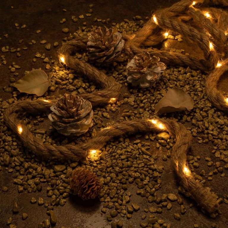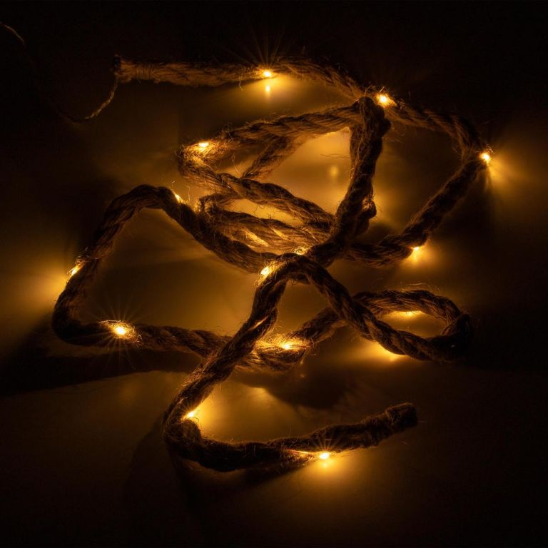 Elegancka ozdoba świąteczna o długości liny 2 metry, wyposażona w 25 ciepłych białych diod LED do zawieszenia. Dzięki zasilaniu bateryjnemu jesteś niezależny od zewnętrznych źródeł energii dzięki temu elementowi dekoracyjnemu i możesz rozłożyć lekką linkę po całym pomieszczeniu. Diody LED zapewniają wyjątkowo niskie zużycie energii. Dzięki lekkiej dekoracji w eleganckim wzornictwie konopnej liny masz kilka możliwości projektowania, niezależnie od tego, czy obok choinki, na oknie czy na półce, ten lekki element tworzy przytulną świąteczną atmosferę. Dzięki wyłącznikowi czasowemu z czasem świecenia do 6 godzin możesz sam zdecydować, kiedy chcesz włączyć oświetlenie. Dowolnie wybierany timer lub funkcja ciągłego oświetlenia.