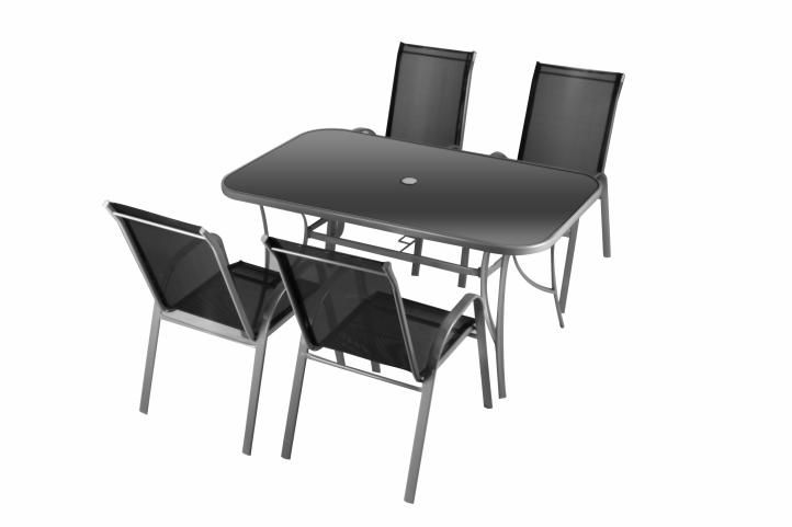 5-częściowy zestaw mebli oferuje wszystko, co potrzebne jest do ogrodu lub na taras. Komplet dla 4 osób składa się z 4 krzeseł i stołu. Zestaw charakteryzuje się dużą funkcjonalnością. Ramy wykonane są ze stali lakierowanej, są więc stabilne. Idealny na taras, ogród, balkon, basen lub podczas kempingu.