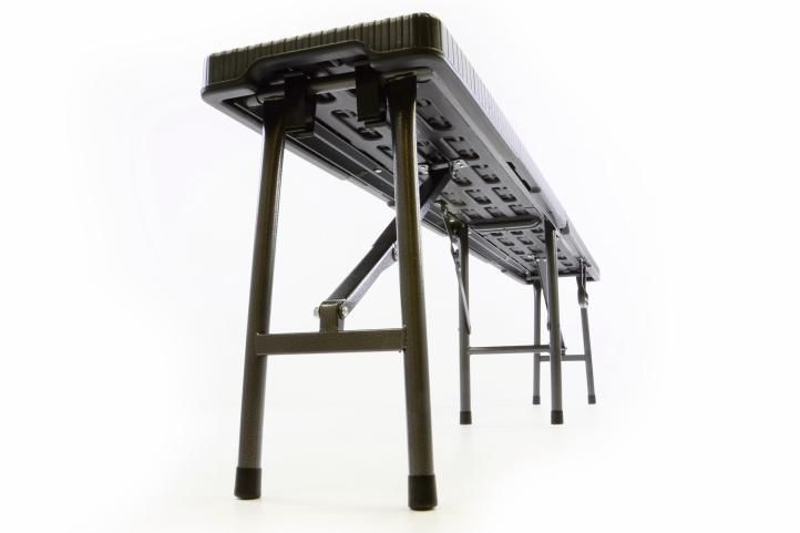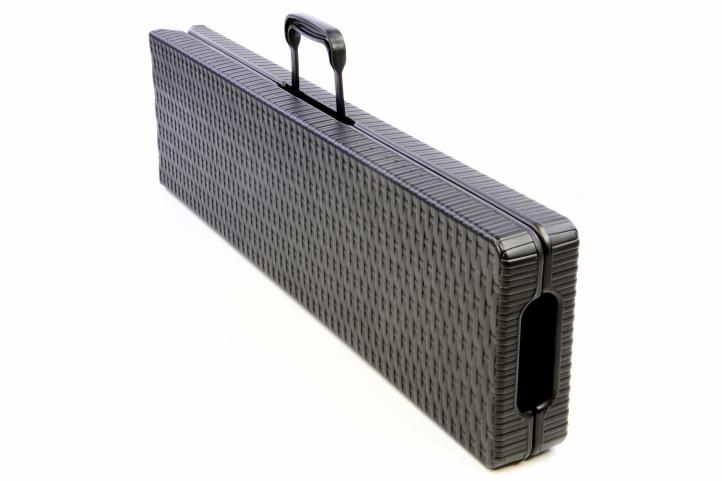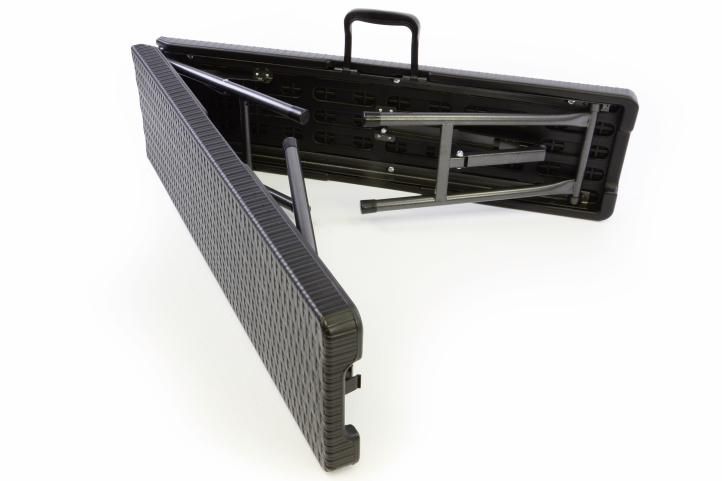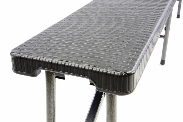 Czarny składany zestaw w eleganckim stylu przyciąga uwagę. Stół i ławki są z ręcznie rozkładane. Dzięki zintegrowanemu uchwytowi możesz przenieść zestaw na dowolną imprezę. Jeśli nie potrzebujesz zestawu, złóż go i schowaj. Materiał jest łatwy w utrzymaniu i czyszczeniu. To sprawia, że zestaw nadaje się zarówno do pomieszczeń wewnętrznych, jak i zewnętrznych. Nogi są wyposażone w gumowe koncówki. Nic nie przeszkadza uroczystości.
