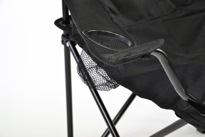 Wygodne krzesło składane z praktycznym uchwytem do kubków, który jest częścią składową podłokietnika. Można wykorzystać na campingu,podczas wędkowania, podróżowania albo przy siedzeniu w ogrodzie. Krzesło wyróżnia się wielką stabilnością, konstrukcją metalową i jest łatwe w manipulacji - można je złożyć w ciągu kilku chwil. Do uchwytu na podłokietniku można odłożyć sobie napój , komórkę i inne potrzeby, które będą w zasięgu ręki. W cenie wliczony jest też futerał z paskiem na ramię.