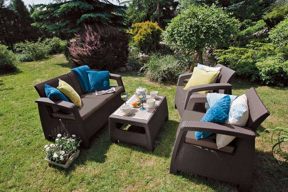 Zestaw Corfu to wygodne i nowoczesne miejsce do siedzenia zarówno na zewnątrz, jak i wewnątrz. Zestaw wykonany z formowanego tworzywa sztucznego imitującego płaski rattan. Całość uzupełniają poduszki, które zapewniają jeszcze większy komfort. Ten zestaw jest jednym z najlepiej sprzedających się w tej kategorii!
