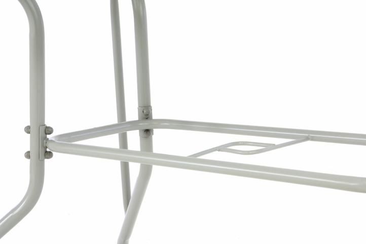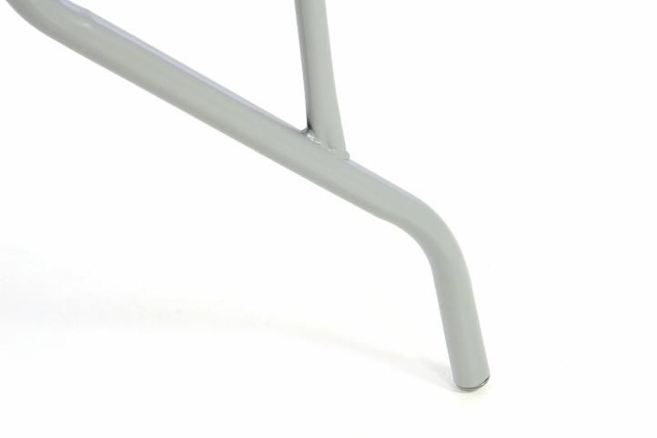Konstrukcja stalowa stołu i krzeseł jest malowana proszkowo, a nogi są wyposażone w gumowe zaślepki. Zastosowane materiały są łatwe w utrzymaniu, odporne na warunki atmosferyczne i nie wymagają specjalnych środków pielęgnacyjnych.