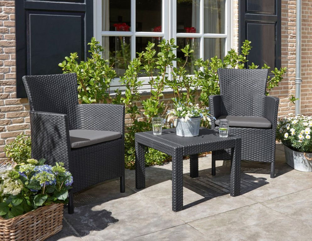 Rosario to stylowe miejsce do siedzenia zarówno na zewnątrz, jak i wewnątrz. Zestaw wykonany z formowanego tworzywa sztucznego imitującego naturalny rattan. Całość uzupełniają poduszki, które zapewniają jeszcze większy komfort. Składa się ze stołu i dwóch foteli z wyższym oparciem. Łatwa instalacja i konserwacja.