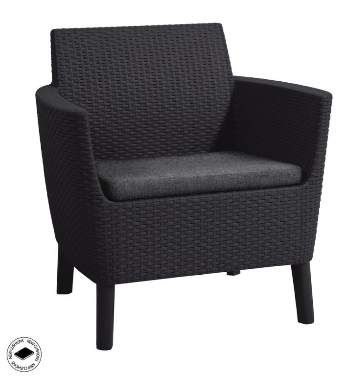 Salemo 3 seater to zupełnie nowy produkt na rynku, który wyróżnia się zarówno w stylu nowoczesnym, jak iw stylu retro. Jest to elegancki zestaw z imitacji rattanu, składający się z dwóch foteli, potrójnej kanapy i stołu, który służy również jako schowek. Produkt wyposażony jest w wygodne poduszki w stylowych kolorach. Lekka i stabilna konstrukcja mebli jest idealna zarówno na zewnątrz, jak i wewnątrz. Zestaw jest bardzo łatwy w utrzymaniu. Produkt jest wysoce odporny na promienie UV i warunki atmosferyczne.